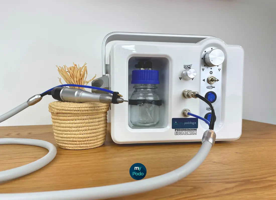 If you're looking for the best micromotor in terms of quality and practicality, look no further than the Podomonium Economium. As our customers' number one choice, this micromotor combines performance and durability. It's also an easy-to-use, compact, and lightweight spray device. All these qualities make it a must-have at My Podologie.
