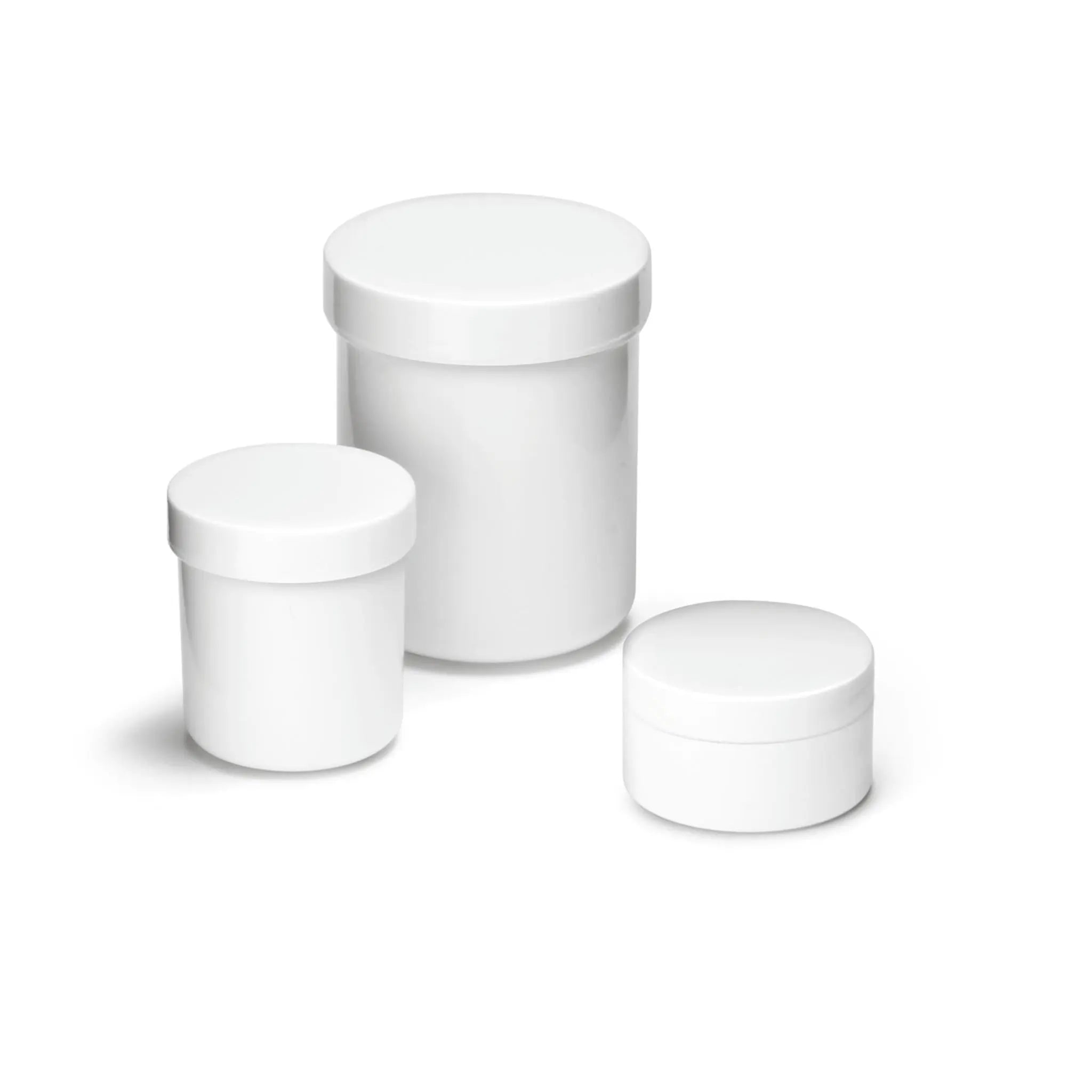 Cajas de plástico blanco en 3 tamaños de 10 piezas cada una.