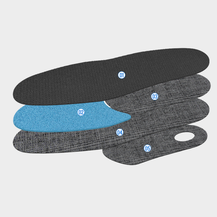 La amortiguación en la parte delantera del talón está especialmente diseñada para la metatarsalgia. Proporciona una comodidad excelente, alivia la presión sobre las cabezas de los metatarsianos, ofrece un buen soporte para el arco y estabiliza el talón sin amortiguar. La parte delantera del talón es muy cómoda y amortiguada gracias al acolchado.