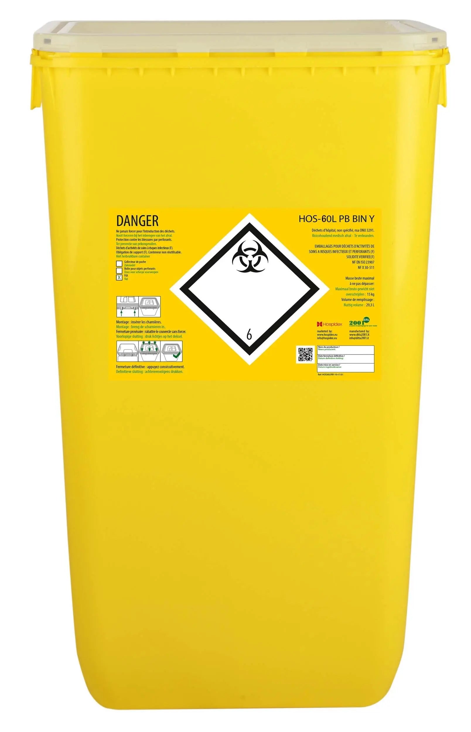Conteneur Fût en plastique rectangulaire - Clinisafe