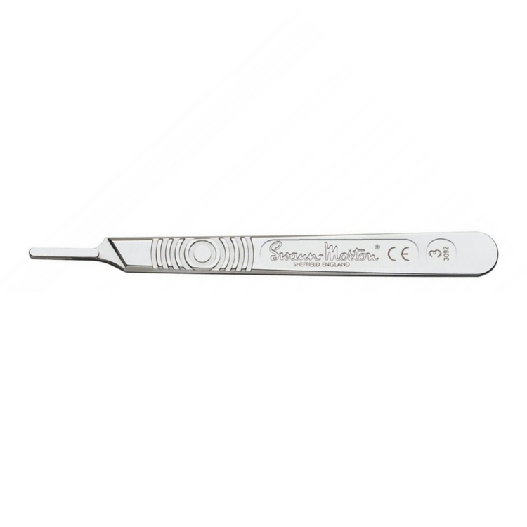 Manche de bistouri autoclavable en inox Swann-Morton N°3, N°4 ou N°9.