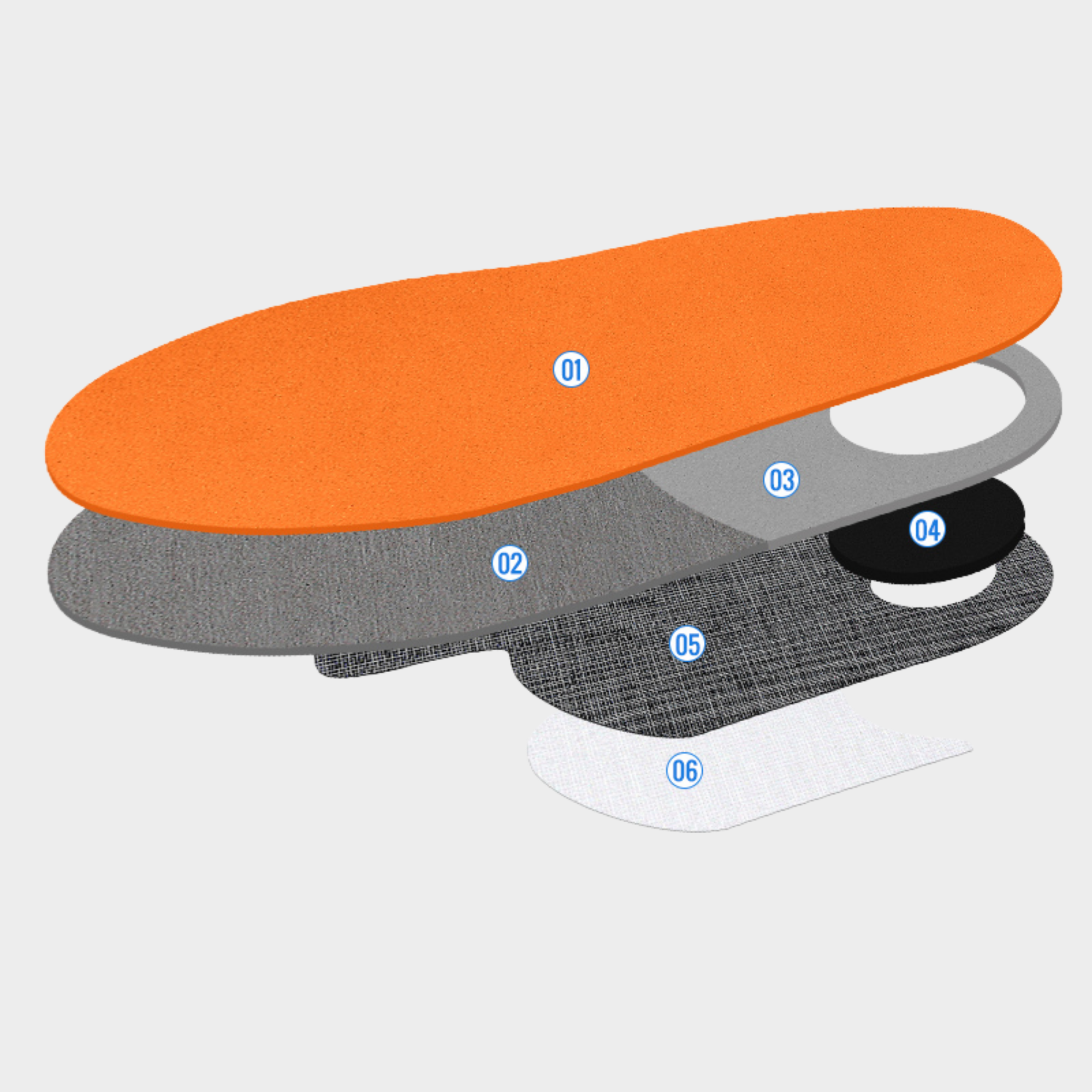 Module avec amorti au niveau du talon, stabilisation du médio-pied, contrôle de la poussée valgisante en phase digitigrade et matériaux propulseurs sur l’avant-pied.