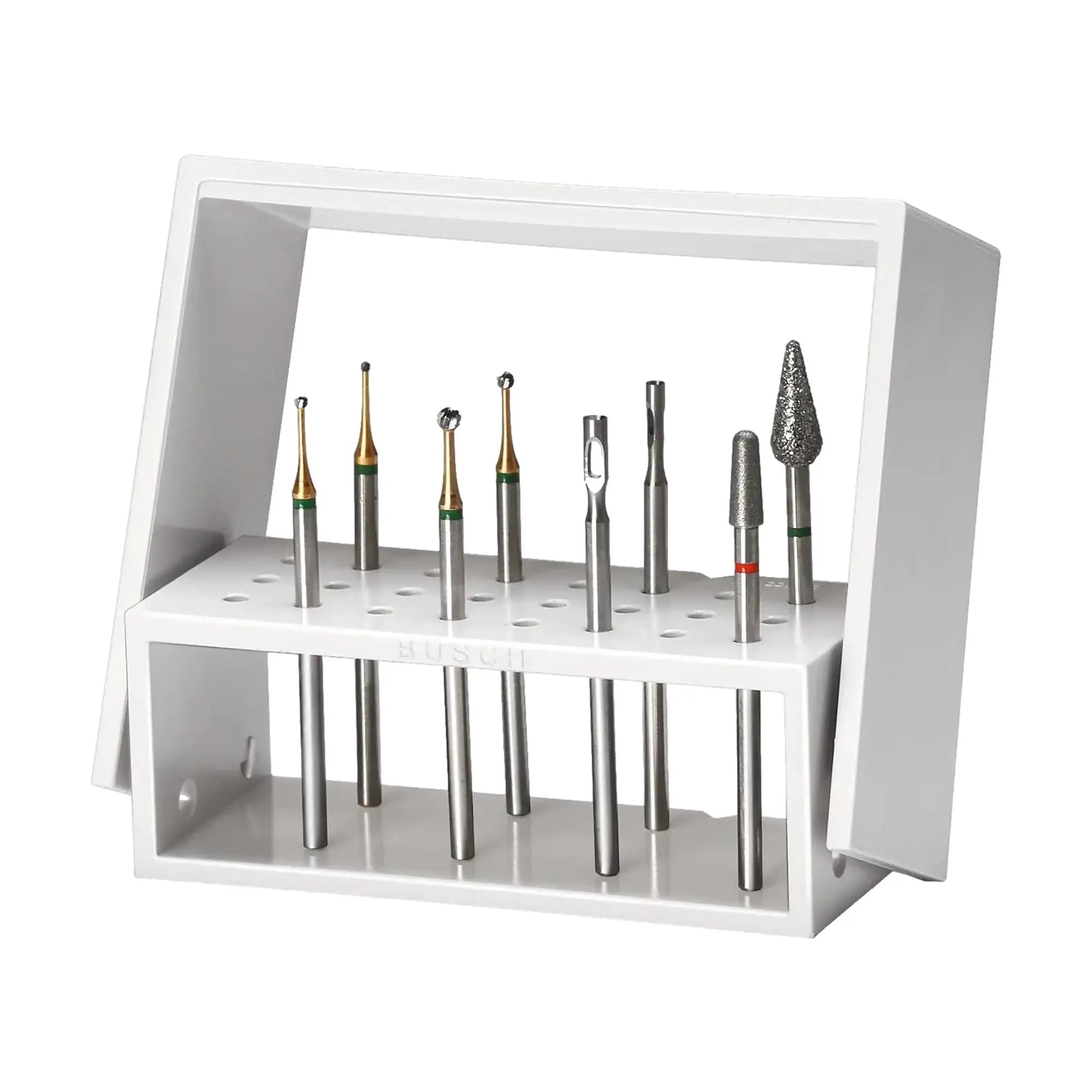 Sélection d'instruments BUSCH orientée vers l'application pour le traitement ou l'élimination ciblée des cors. Des fraises pour l'enlèvement des couches supérieures des grains plus gros et plus durs aux fraises à billes fines pour le traitement de la couche la plus profonde pendant le traitement au clavi, tout est inclus.