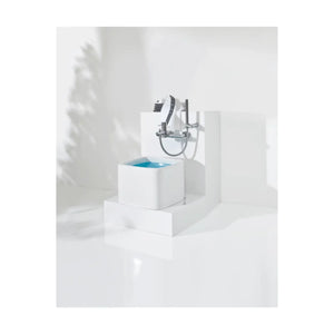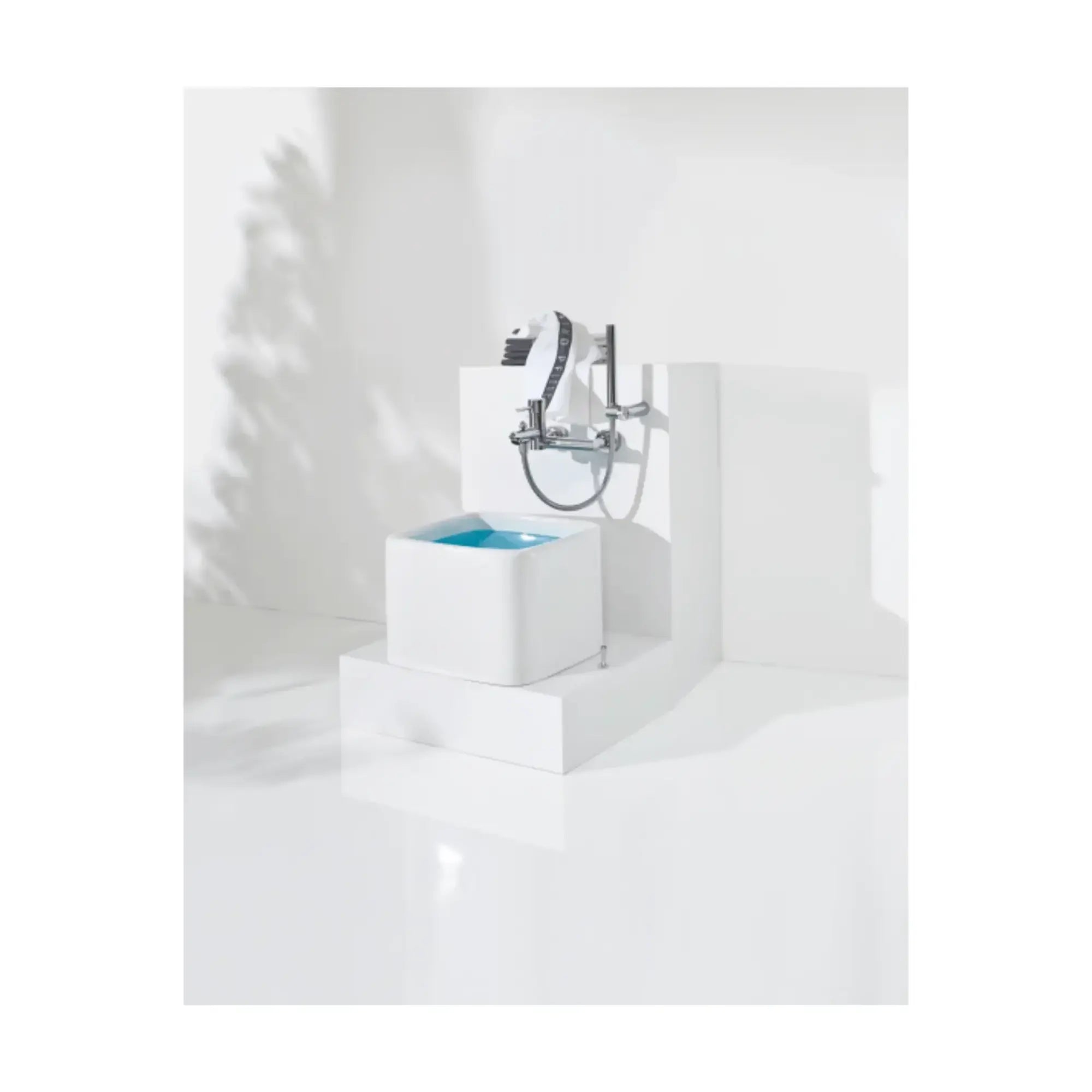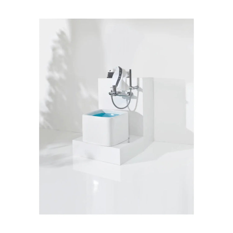 Pédiluve carré avec coins arrondis, céramique blanche de haute qualité, vidage et trop-plein inclus.