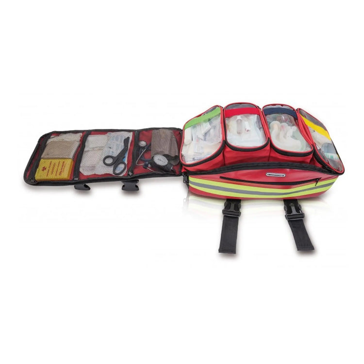 Sac d’urgences trapézoïdal, conçu pour les sauvetages et les interventions dans des différents scénarios, comme en zones d’accès difficile.