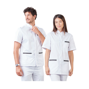 Tunique médicale mixte cintrée avec col. Un modèle efficace aux détails élégants.